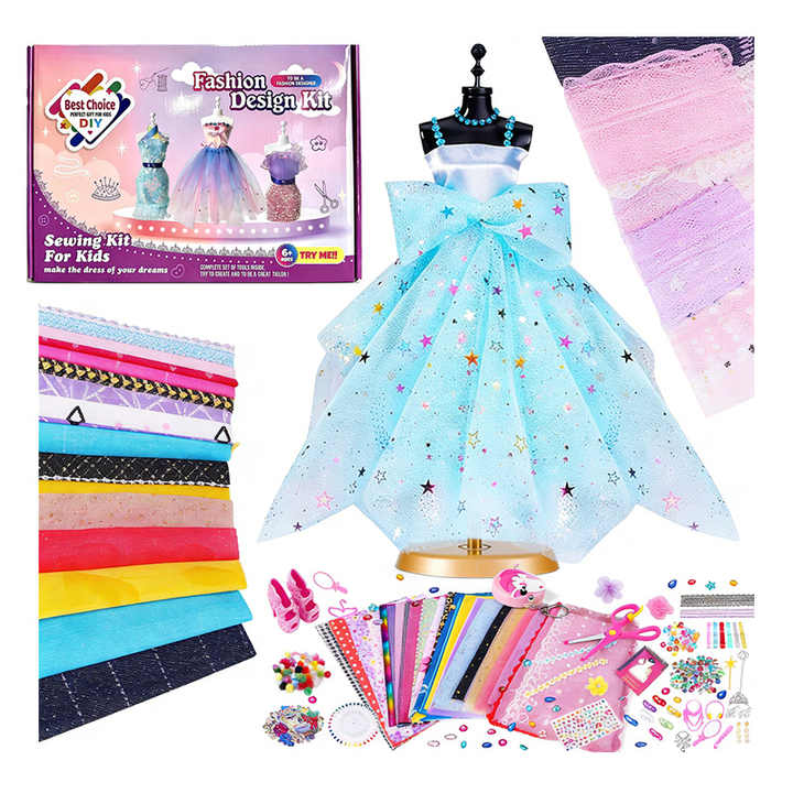 Kit de studio de conception de mode pour débutants, couture, artisanat, mannequin, gabarits en tissu plastique, accessoires, outils, tutoriel vidéo, âges huit ans et plus