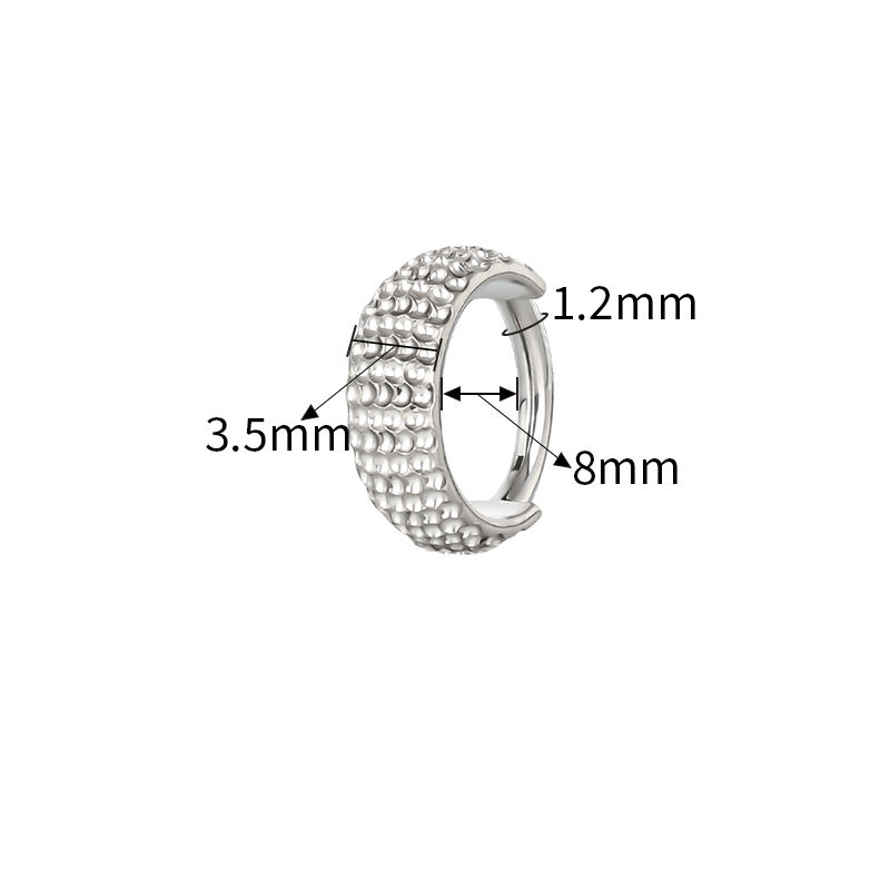 Bijou de mode : Anneau de piercing créole segmentée articulée en Titane ASTM F136, grand modèle, avec côtés à découpe texturée, pour femmes et hommes