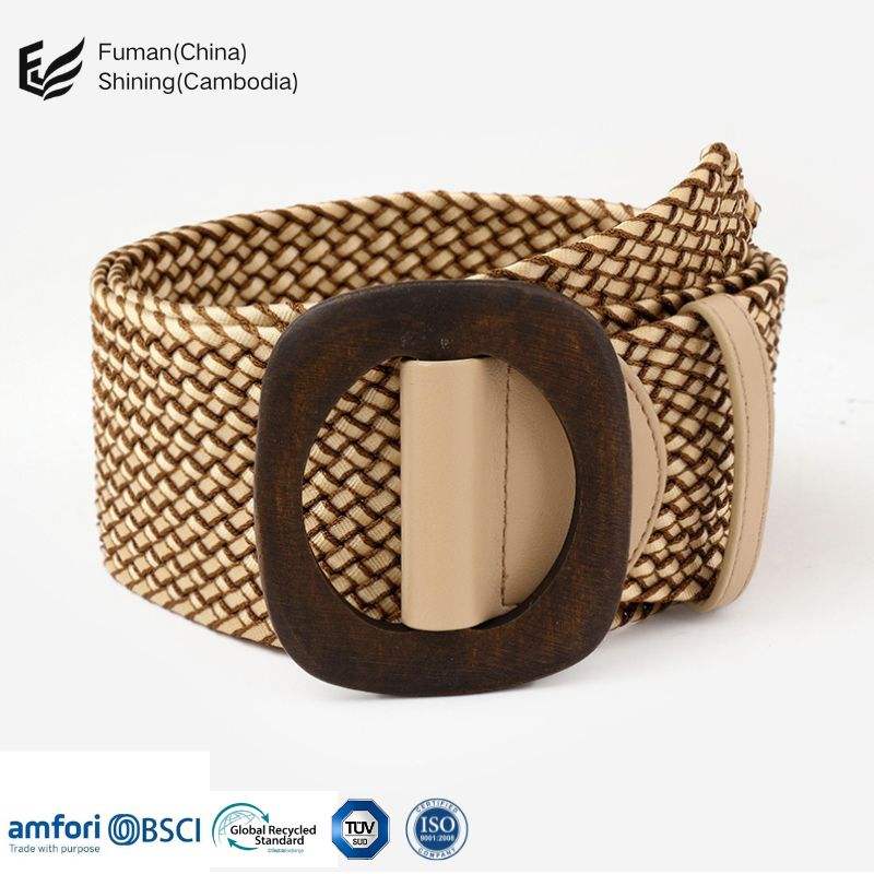 Mode élastique large ceinture en gros simple boucle en bois femme cire corde tressée décoration polyvalent manteau jupe
