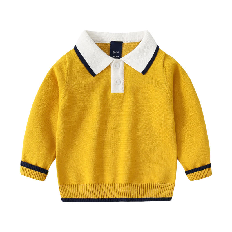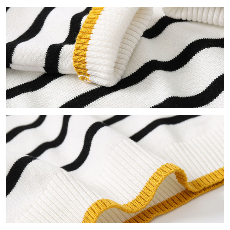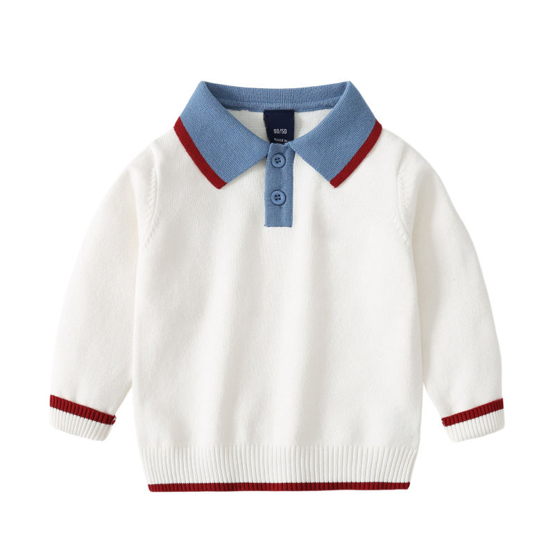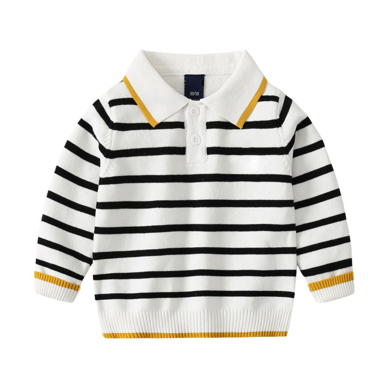 Mode brodé couleur unie garçon pull en tricot automne hiver revers rayé bébé chandails en tricot