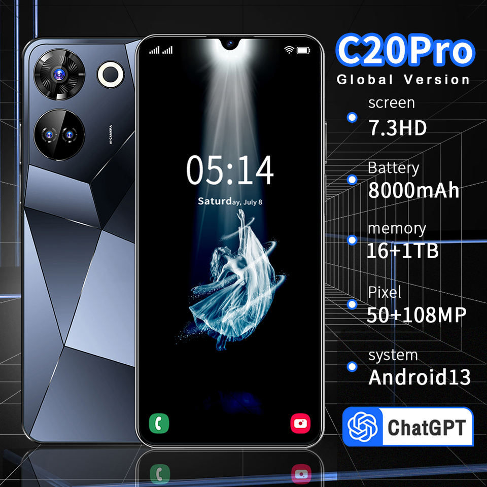 Coque de téléphone géométrique tendance | Écran Waterdrop 108MP Multi-caméras LTE/CDMA 120Hz 4K LCD Anglais