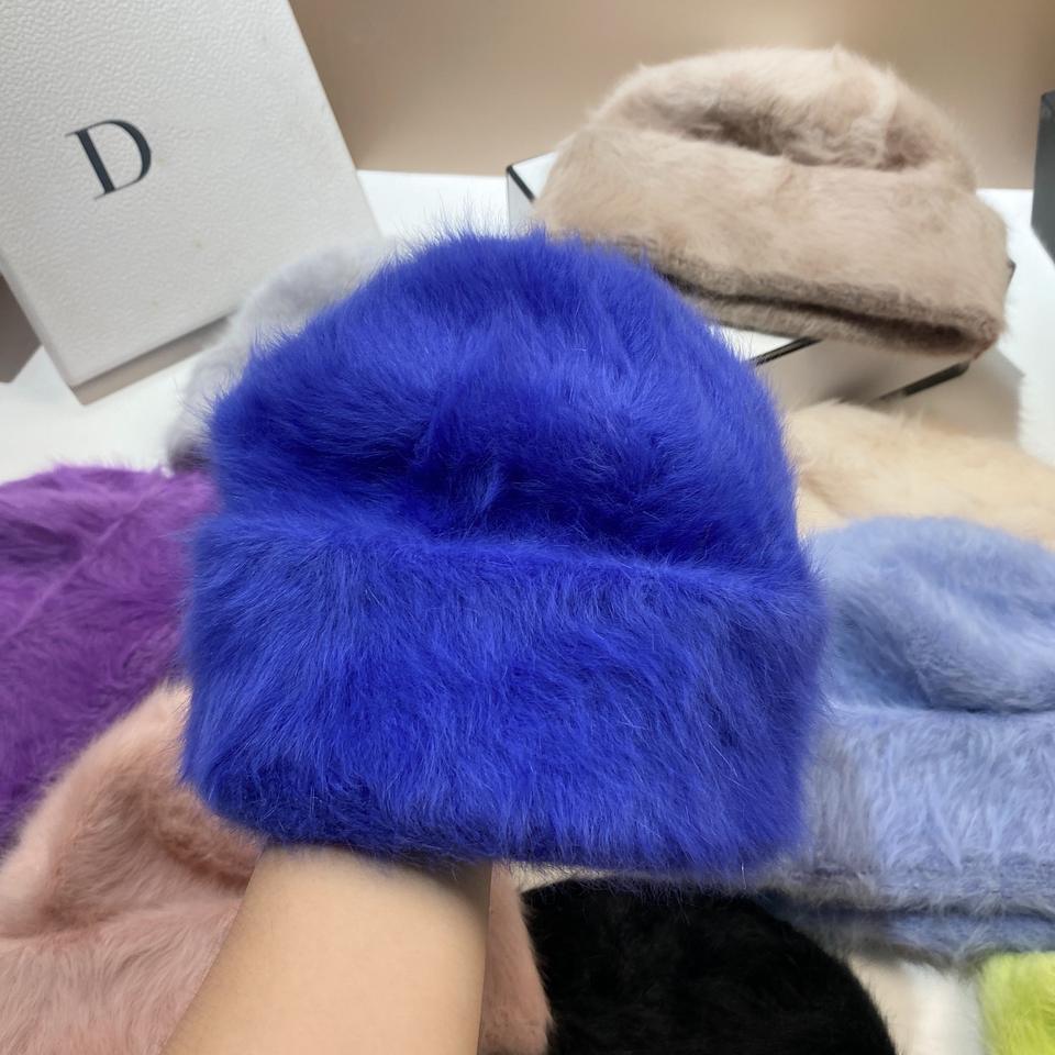 Mode fourrure longue Angora lapin fourrure hiver chapeau femmes en peluche Bonnet Toque casquette tricoté chaud Beanie