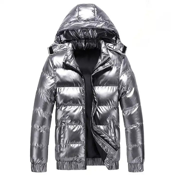 Manteaux à bulles brillants en plumes d'oie à la mode Veste à capuche pour hommes Vestes à bulles avec logo personnalisé au tarif de gros