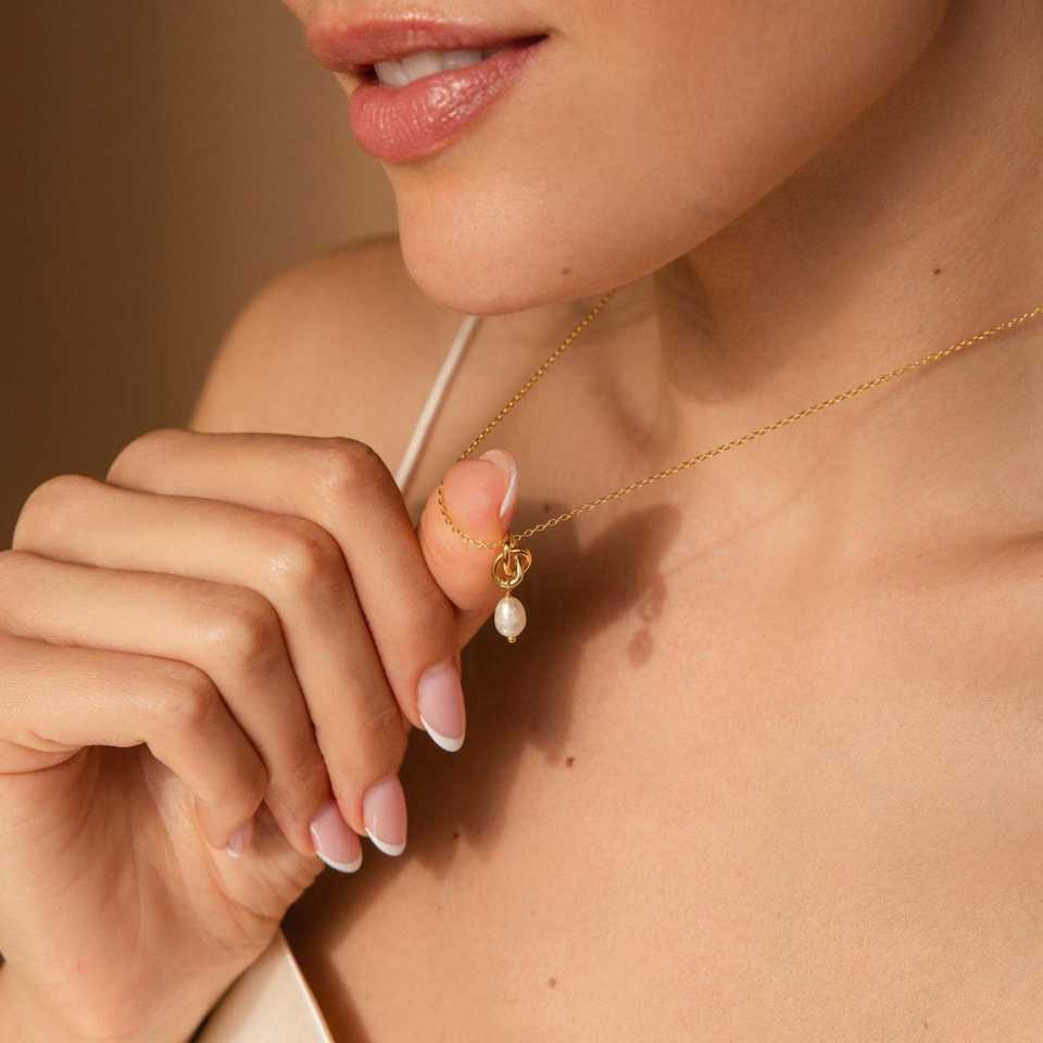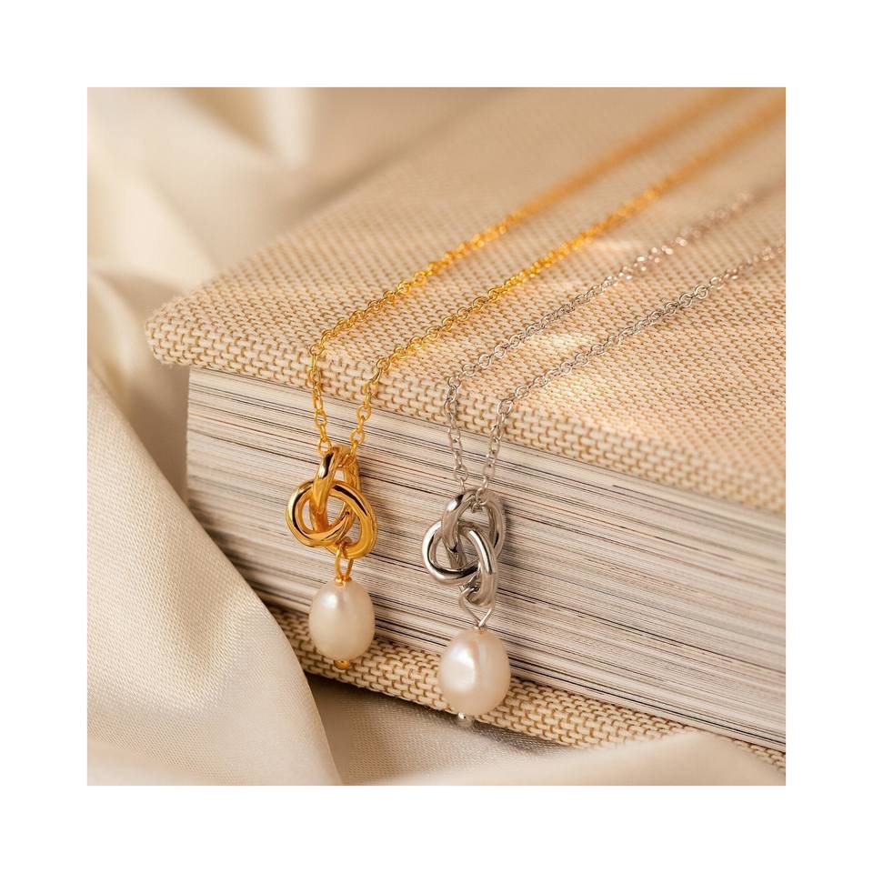 Product name:Twisted Knot Pendant Pearl Drop Necklace Earring Set