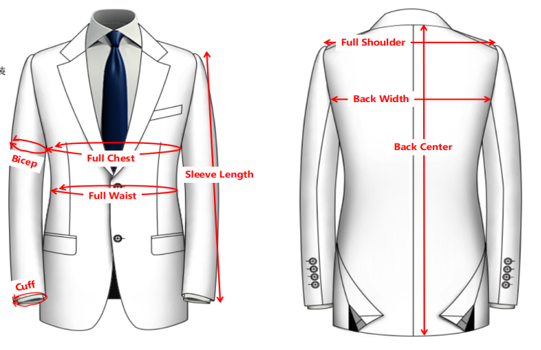 FRONT, BACK, LEFT SLEEVE, RIGHT SLEEVE