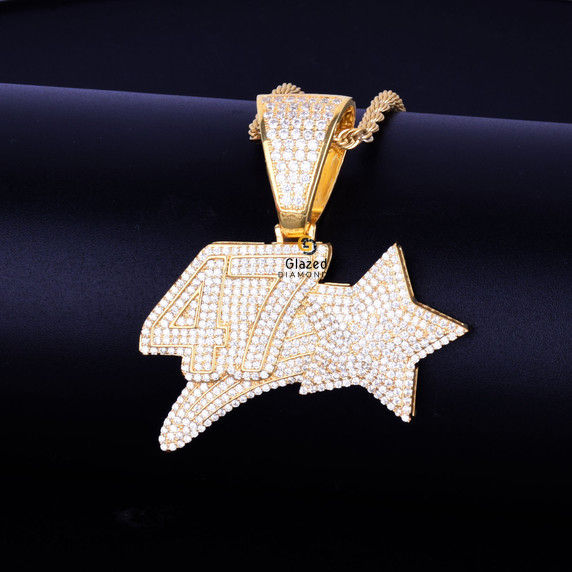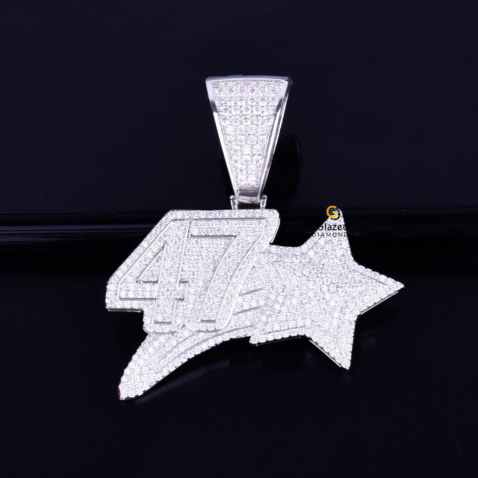 Bijoux de mode pendentif numéro en diamants Moissanite taille ronde de style Hip Hop et or blanc 10kt pour unisexe