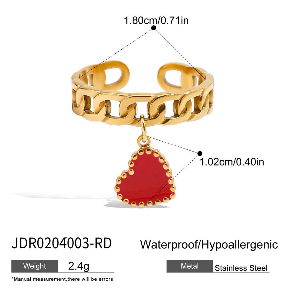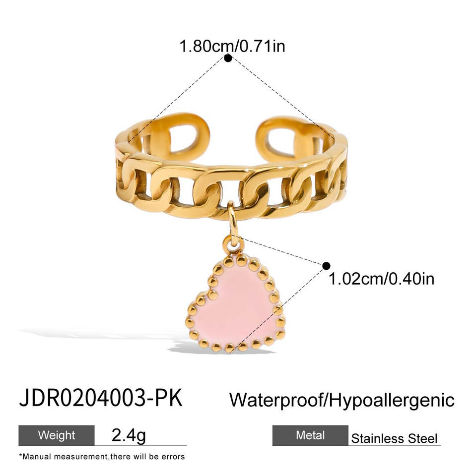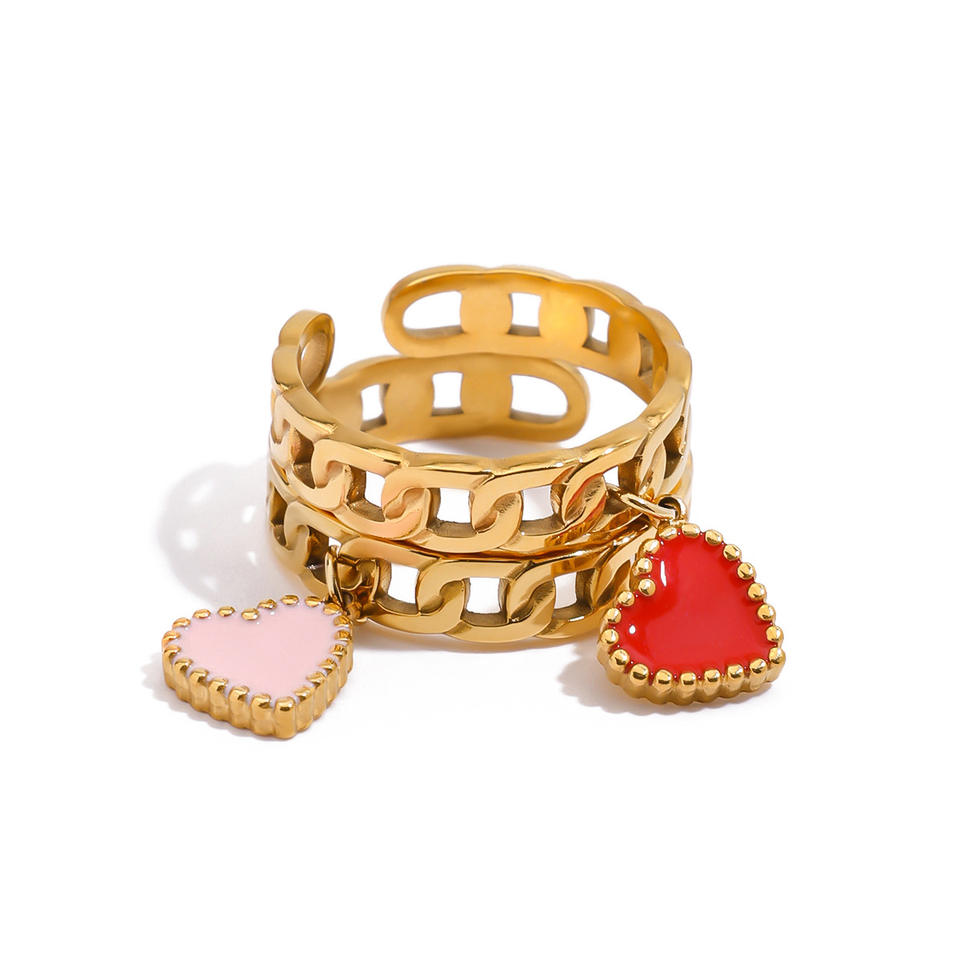 Bijoux fantaisie bagues femmes 18K or acier inoxydable réglable ouvert goutte d'huile coeur pendentif anneau