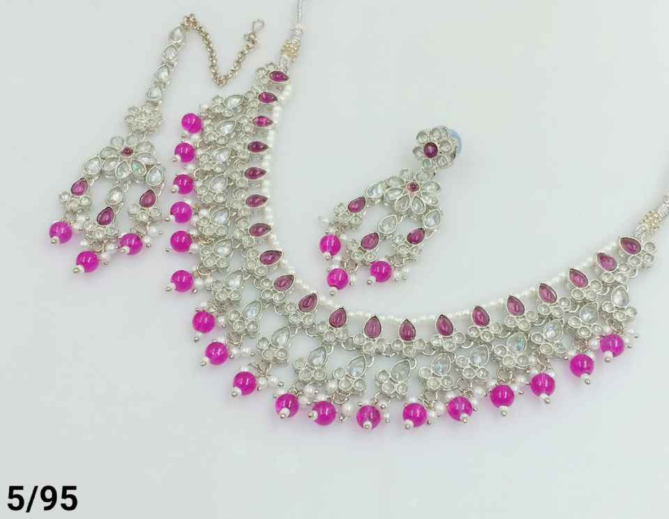 Nouvelle annonce de conception de fleurs non coupées plaqué argent traditionnel et à la mode perle et Kundan clouté collier ras du cou ensemble de bijoux fille