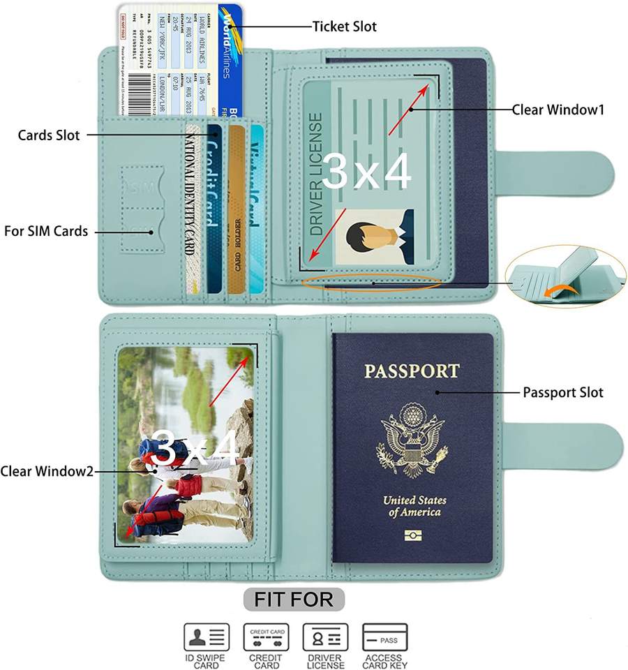 Nom:Porte-passeport en cuir PU couleur unie Titulaire de la carte de crédit en couches
