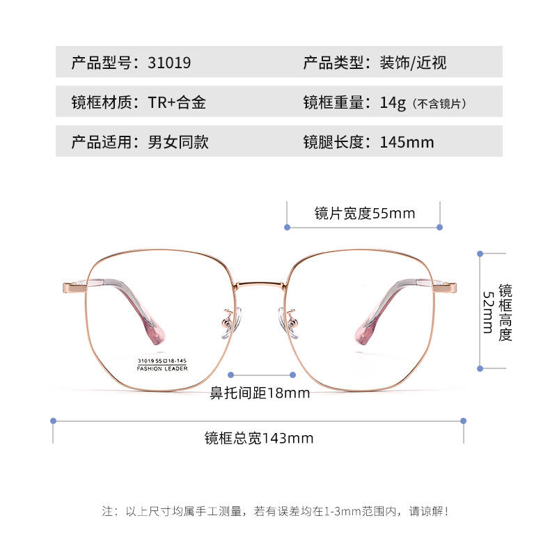Monture de lunettes rectangulaire Fashion Leader 31019 en alliage TR, unisexe, monture complète, verres 55 mm, branches confortables