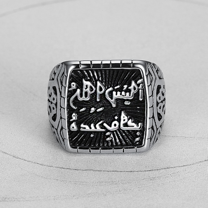 Bague carrée pour homme en acier inoxydable, style rock, avec calligraphie arabe et inscriptions islamiques, design rétro créatif, accessoire de mode masculin