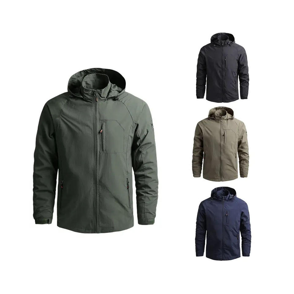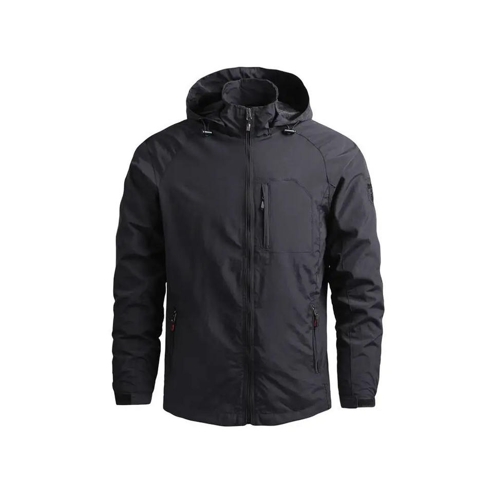 Men's Fashion Slim Fit Quick Dry Windbreaker Removable Hat Canvas Jacket for Outdoor Mountaineering Sports Waterproof Stand