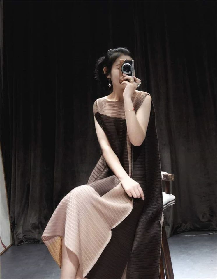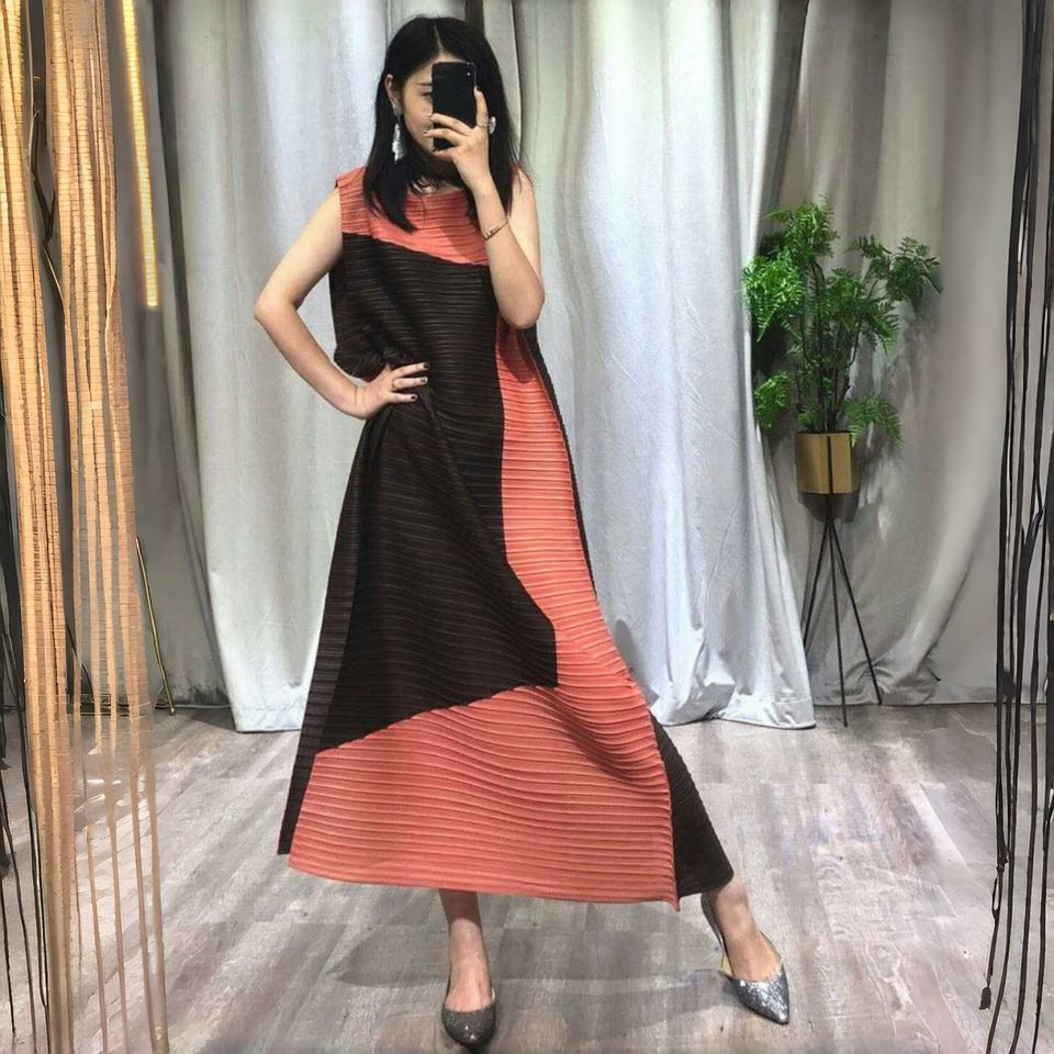 Robe plissée Miyake tendance, patchwork, couleur vibrante, pour femme, grande taille, vintage, veste ample, plissée, décontractée