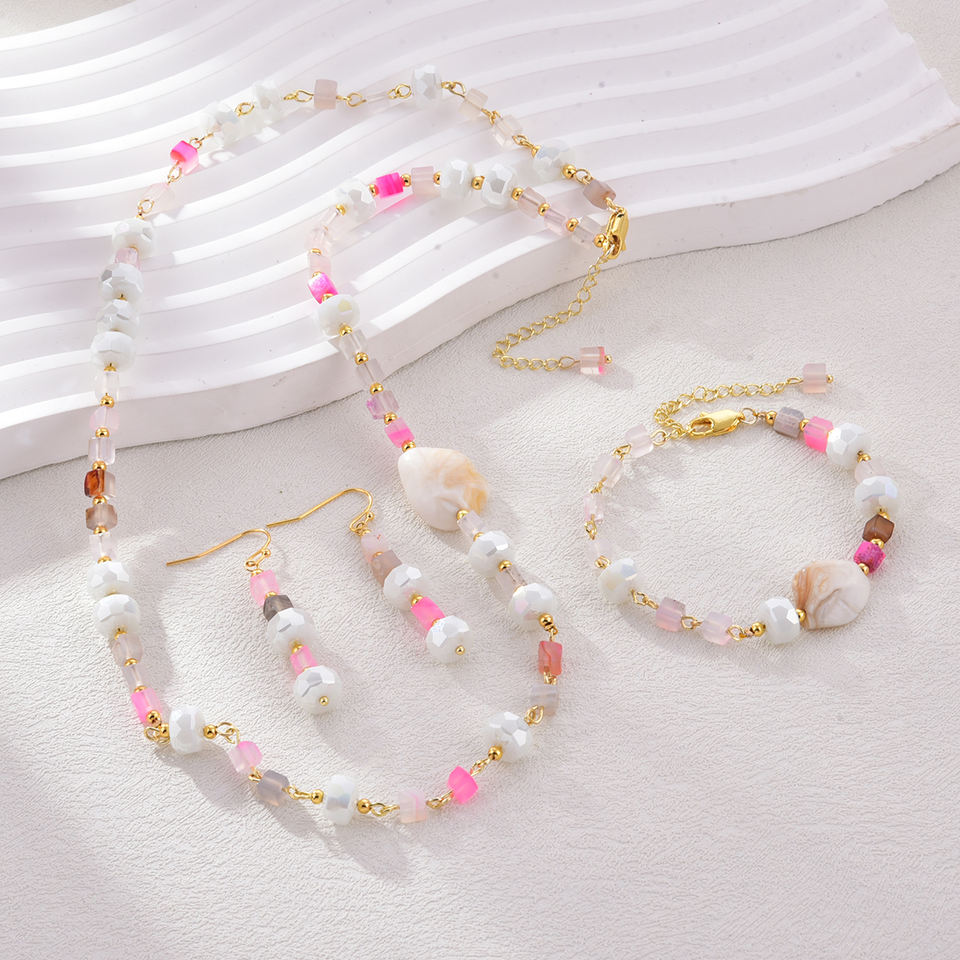 Fashion Natural Stone Women's Three-piece Jewelry Set Bracelet Necklace Earrings Multi Color Beads Durable Non-Allergenic Gift