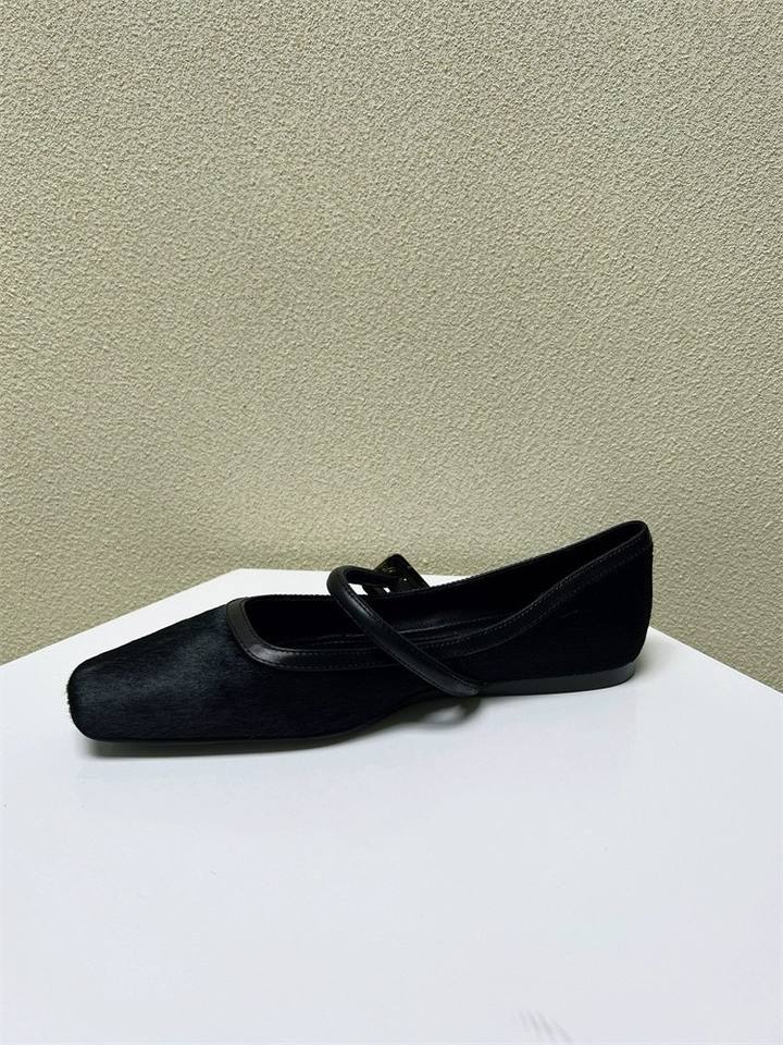 Fashion One Line With Leopard Print Square Head Flat Shoes Shallow Mouth Single Shoes Woman