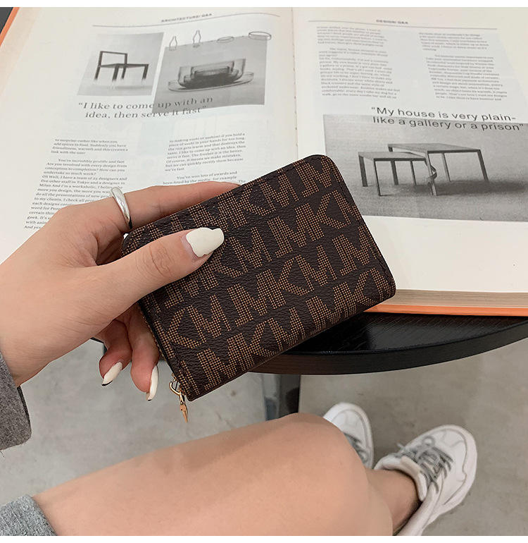 Portefeuille court en PVC tendance avec fermeture éclair, porte-monnaie, porte-cartes, fermeture à bouton-pression, multi-fentes pour cartes d'identité et de crédit, pochette