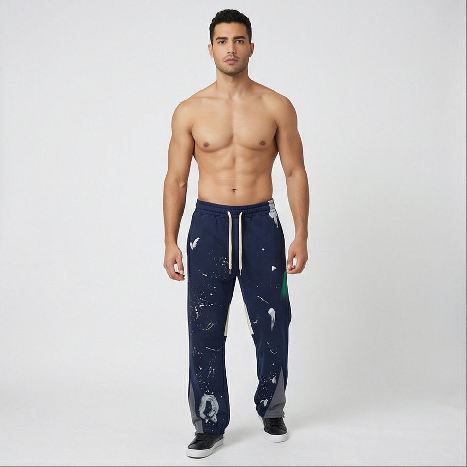 Mode peinture éclaboussures Flare pantalon personnalisé lettre impression bord brut survêtement pantalon Patchwork Graffiti élastique Flare pantalons de survêtement