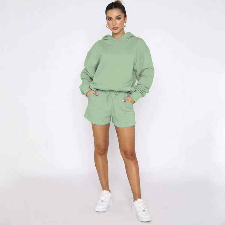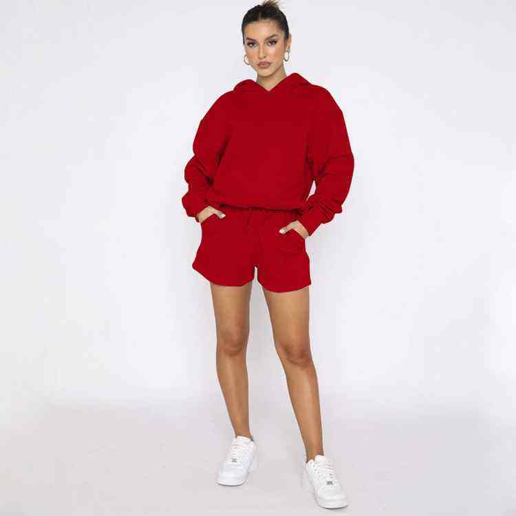 Ensemble de survêtement de sport grande taille tendance avec logo personnalisé, short décontracté uni, short de jogging et sweat à capuche pour femme