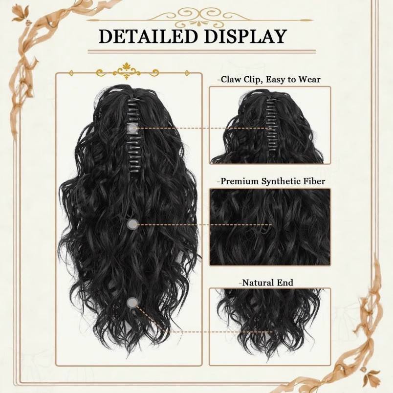 Perruques queue de cheval tendance 14 pouces 35cm 107g en fibre haute température, ondulées et volumineuses avec mèches colorées pour femmes