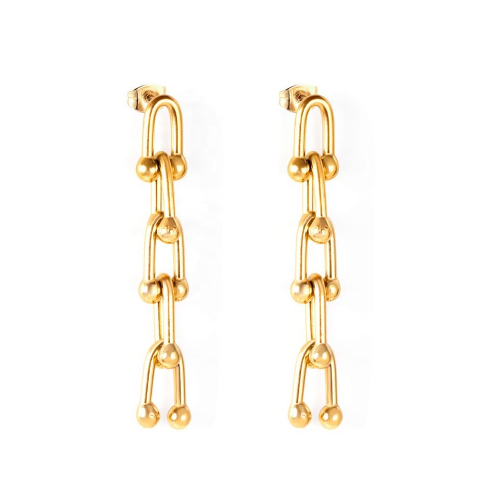 Boucles d'oreilles tendance en acier inoxydable doré style chaîne pour filles