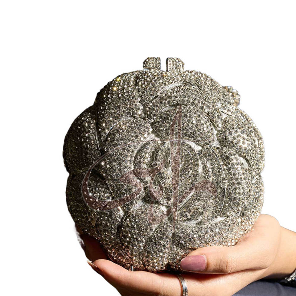 Pochette pour femme en strass argentés scintillants à la mode, portable, avec chaîne dorée à chaque mouvement, boutons en diamants
