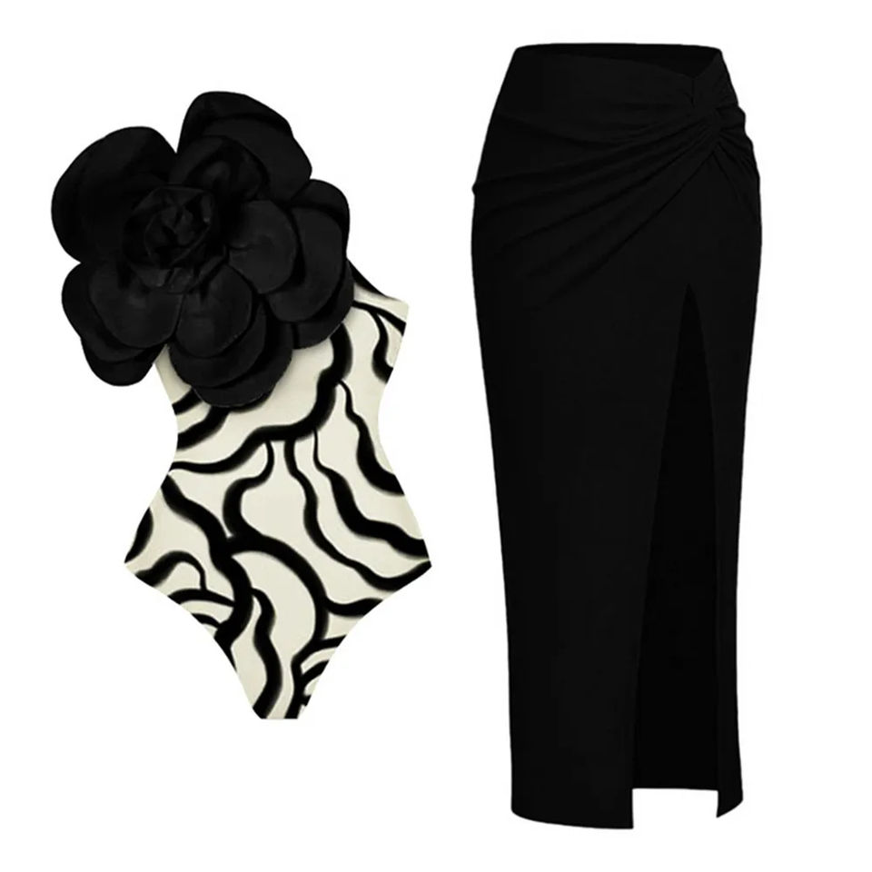 Mode imprimé unique épaule stéréo 3D fleur Chic Bikini femmes 2024 bretelles irrégulière couvrir Design maillot de bain