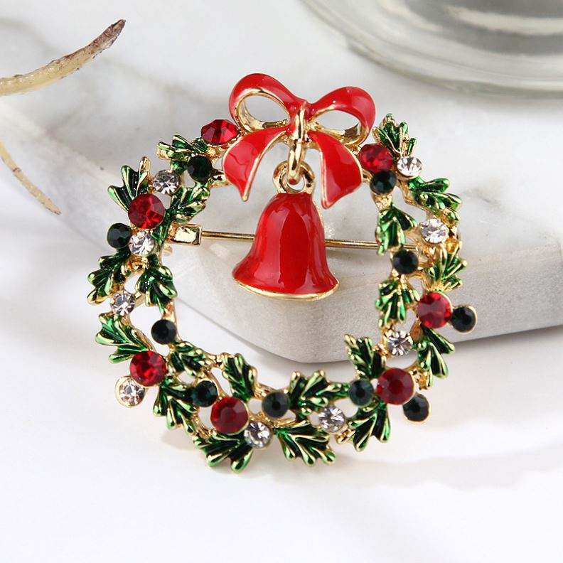 Mode strass arc guirlande cloche peinture huile noël série broche broche bijoux accessoires