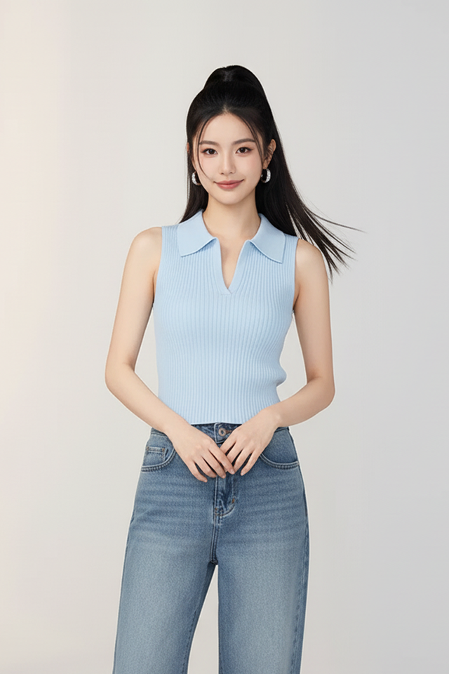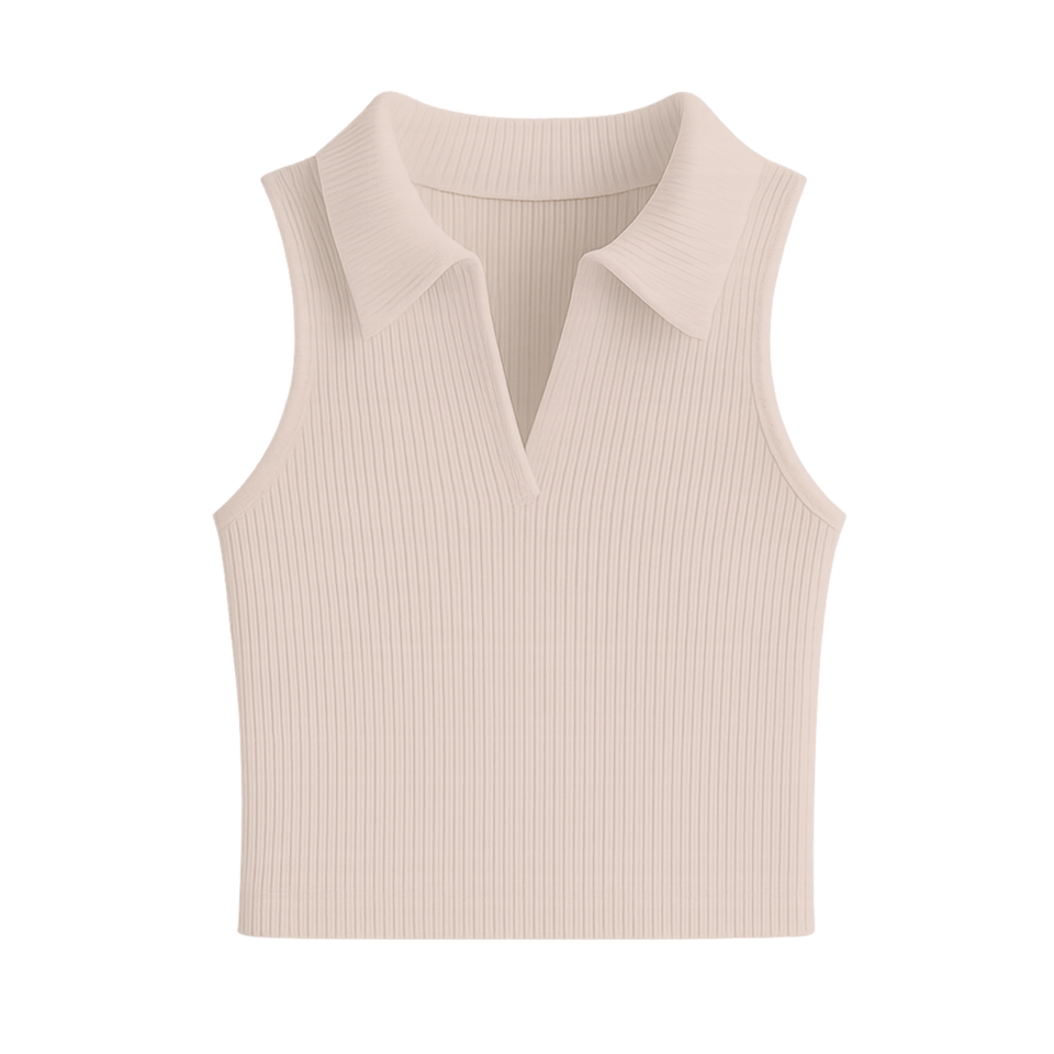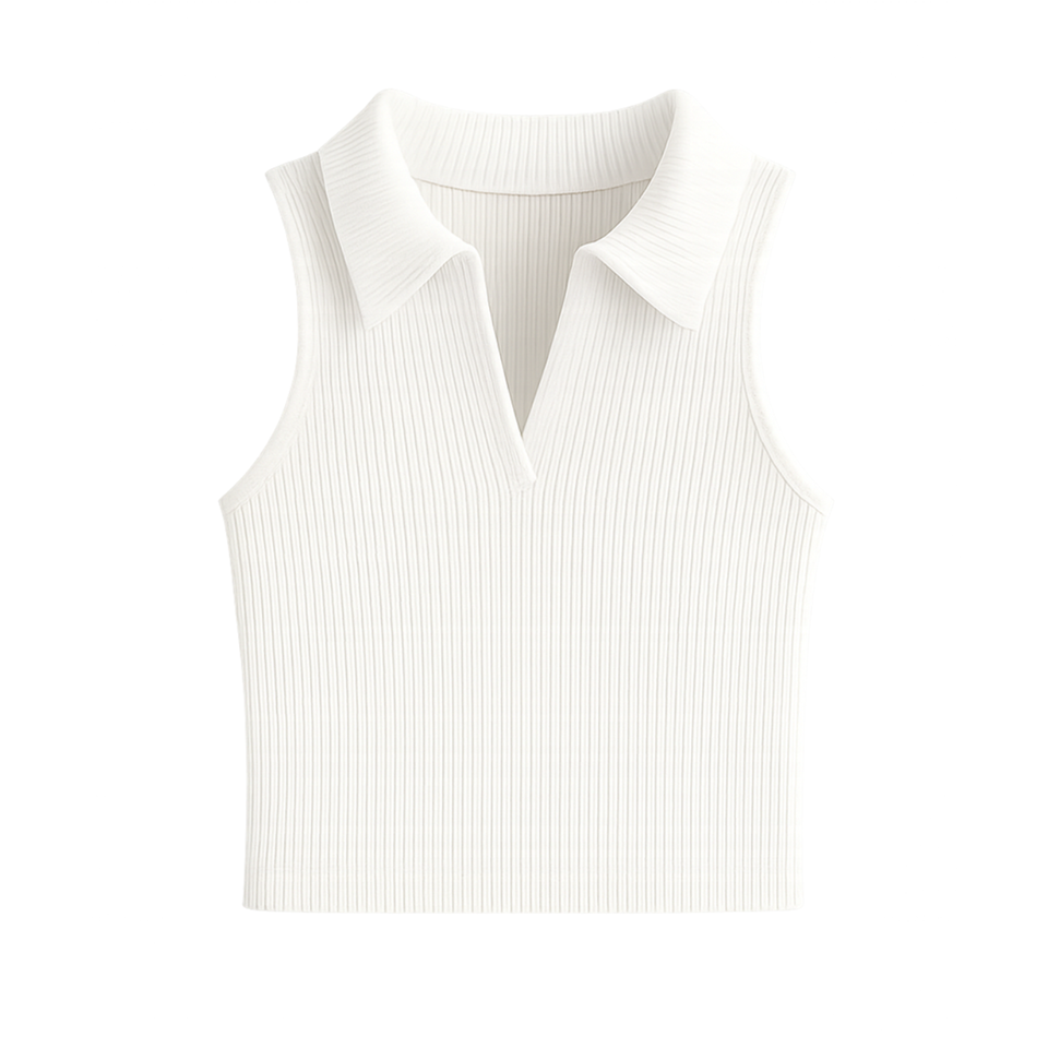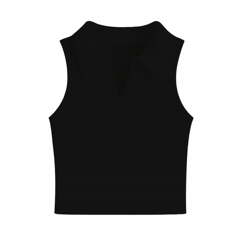Numéro de Type:RIBBED KNIT CROP POLO TANK