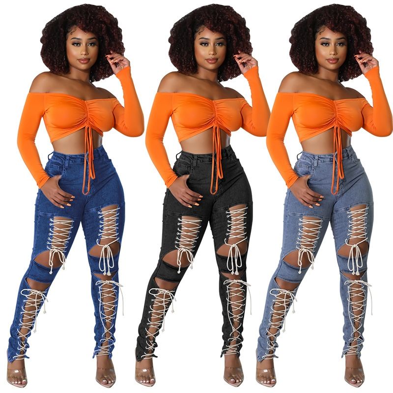 Product Name:Fashion Legging Jeans Denim Pocket Women's Jeans Women Ripped Jeans