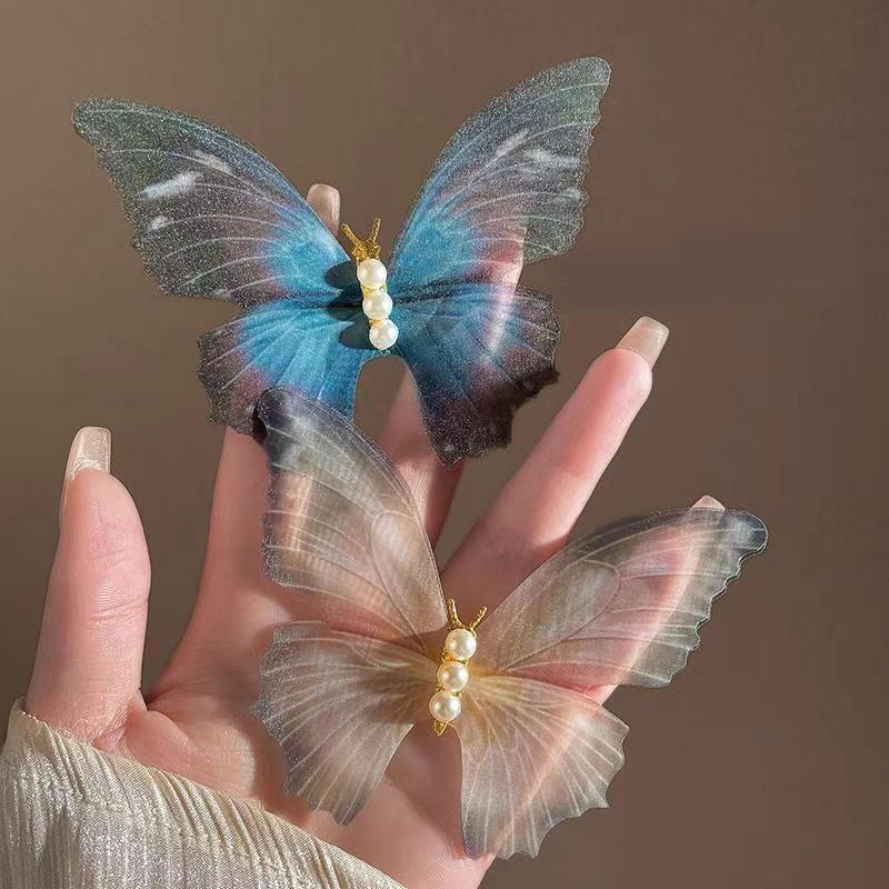 Barrettes à cheveux papillon transparentes tendance pour femmes, épingles à cheveux en fausses perles de fée pour mariage et coiffures quotidiennes