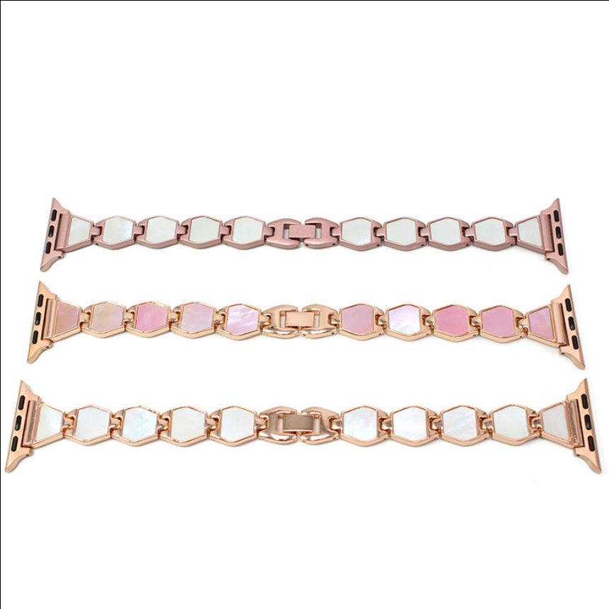 Mode Shell Métal pour Apple Watch Band Femme À La Mode Vintage Exquis Bracelet En Or Rose Bracelet pour Iwatch 41/45mm Série