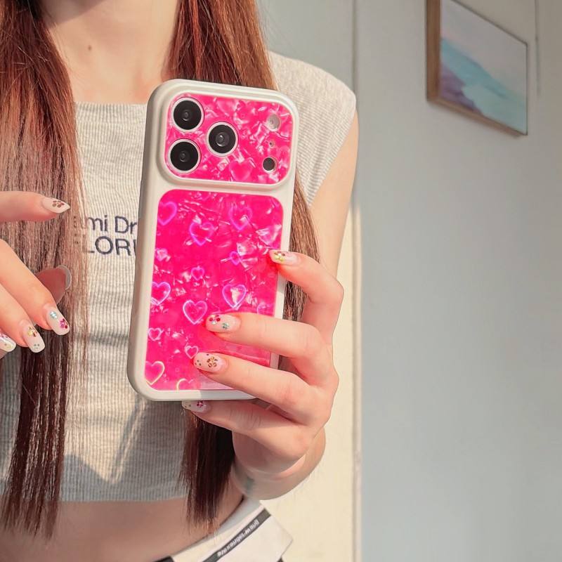 Coque de téléphone portable motif coquillage tendance avec paillettes laser et motif cœur pour iPhone 17 16 15 14 Pro Max, coque arrière IMD colorée et scintillante