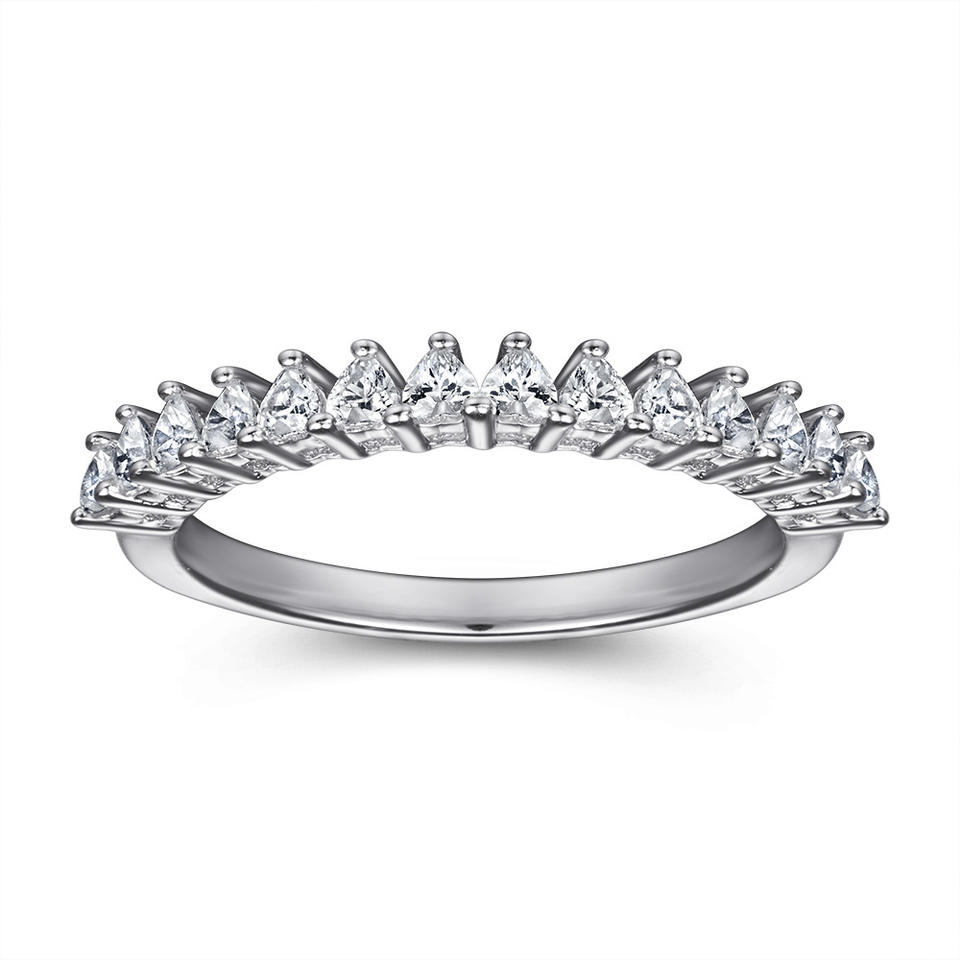 Mode ensemble de bijoux en argent plaqué rhodium coeur coupe blanc zircone anneau collier boucles d'oreilles femmes ensembles de bijoux pour la fête
