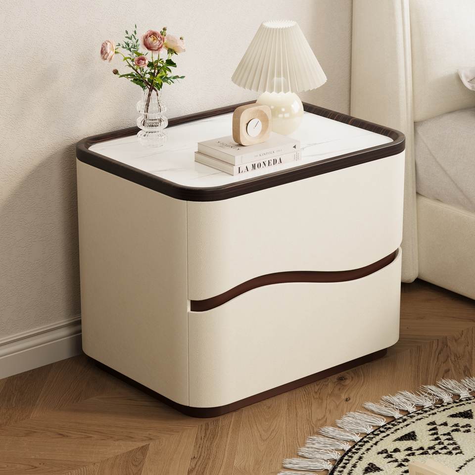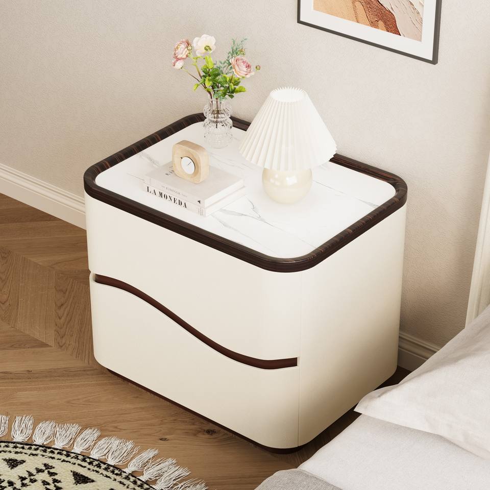 Table de chevet en bois massif avec plateau en marbre, design simple et moderne, installation facile, deux tiroirs, BTBT009, pour la maison ou l'hôtel