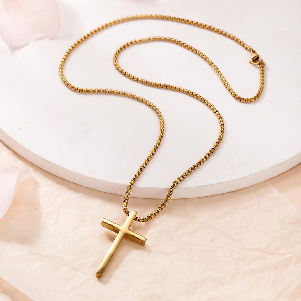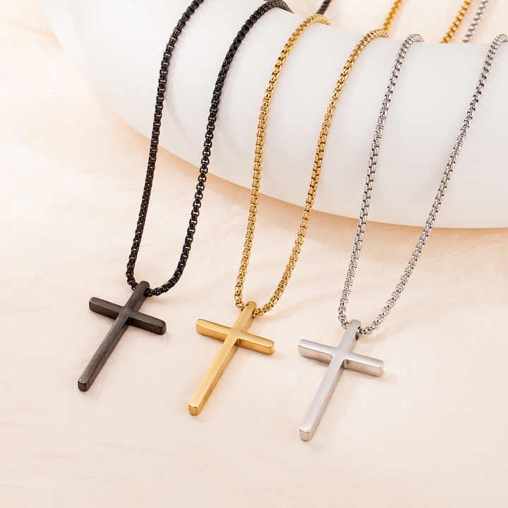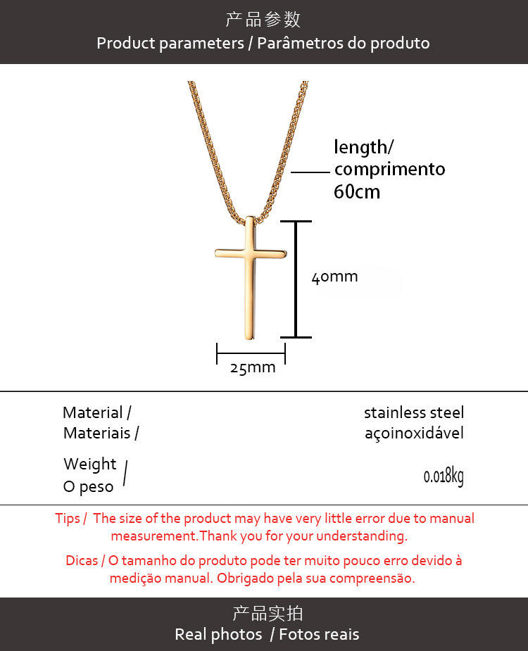 Mode Simple Plain Peronal Personnalisé En Acier Inoxydable Croix Collier Argent Noir PVD Plaqué Or Croix Pendentif Collier
