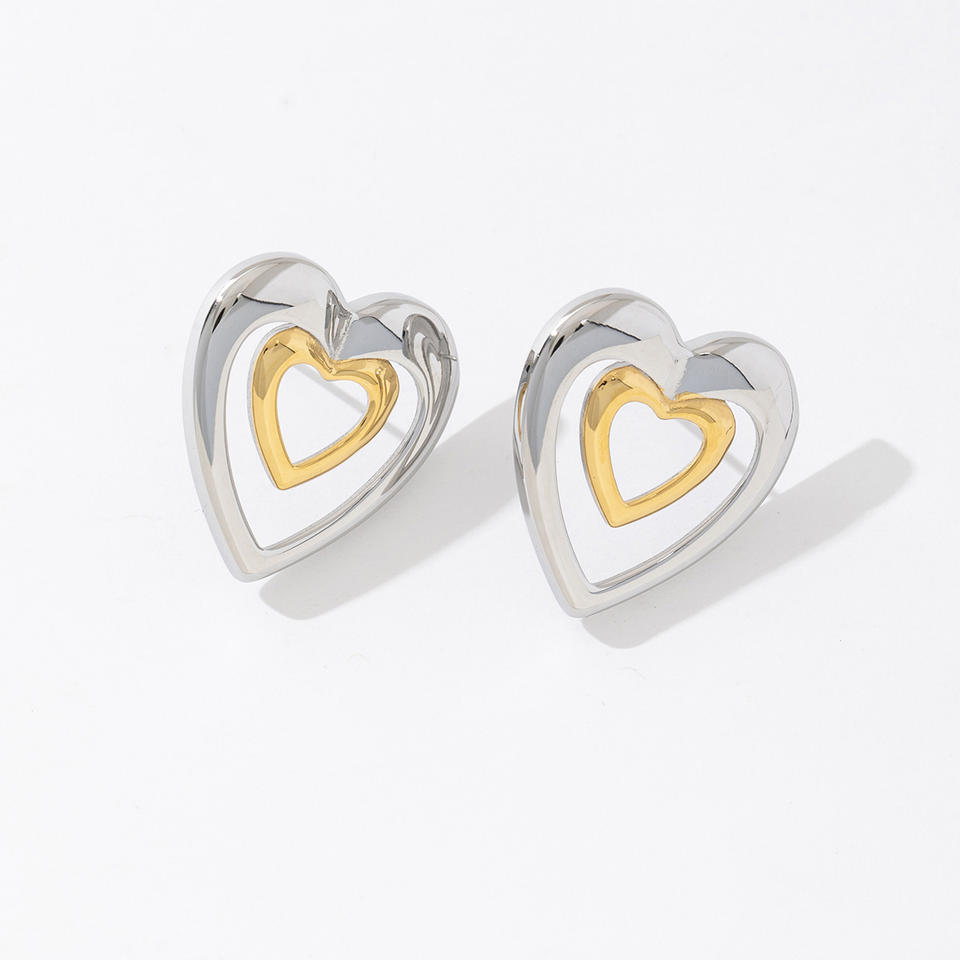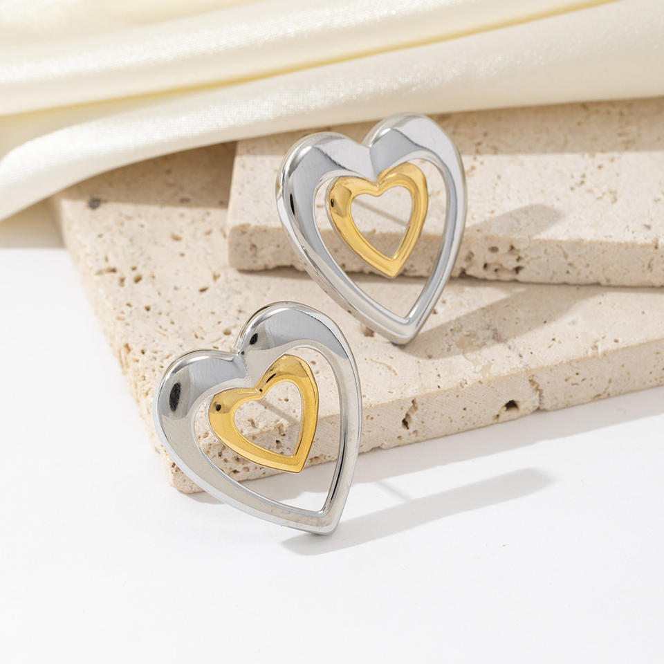 Mode Simple À La Mode En Gros Personnalisé 18K PVD Plaqué Or Étanche En Acier Inoxydable Bicolore En Forme De Coeur Boucles D'oreilles Coeur