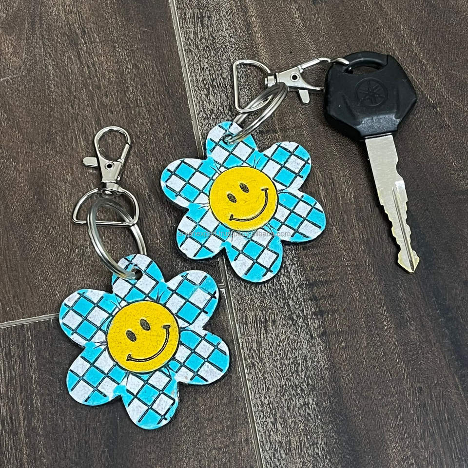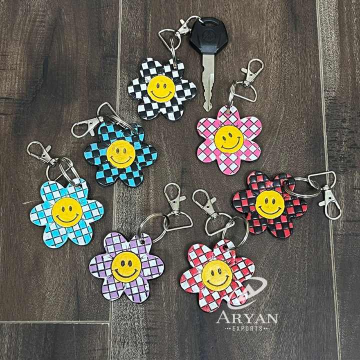 Product name:Hand Tooled Checkered Leather Key Chain