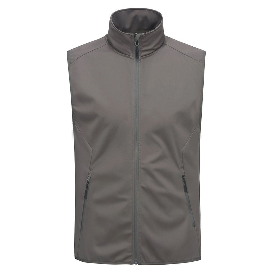 Fashion Soft Shell Sleeveless Vest Gray Color Full Zip Up Stand Collar Thermal Soft Casual Wear Breathable Softshell Waistcoat