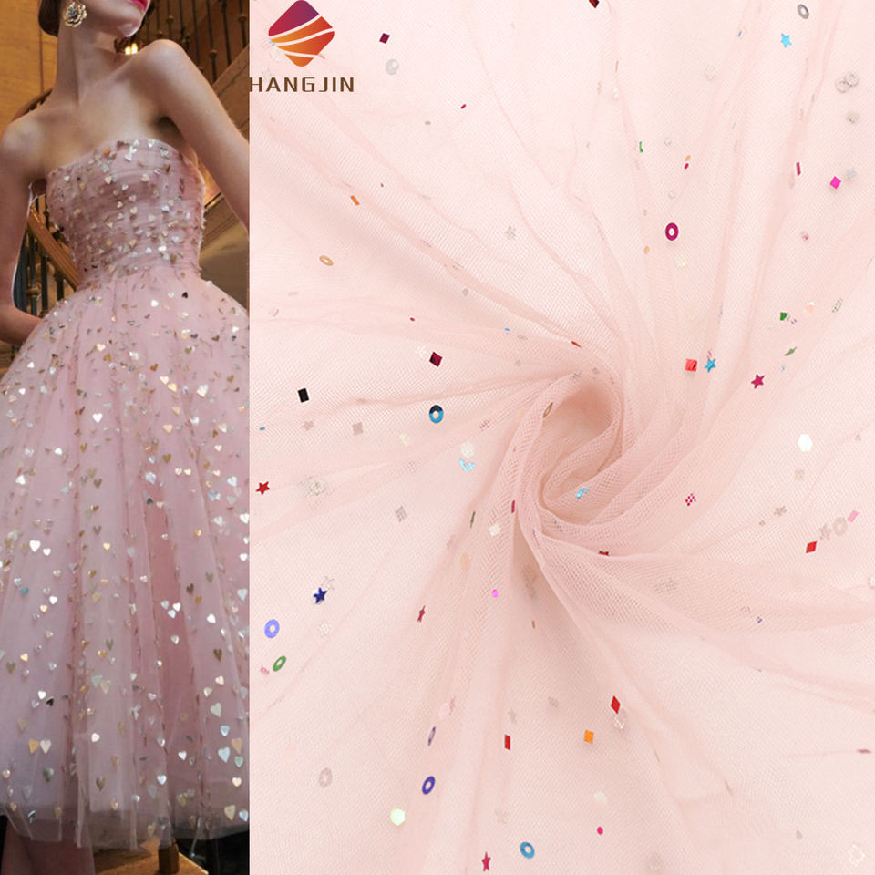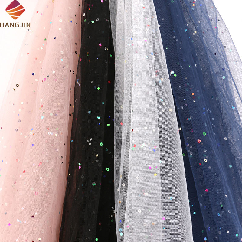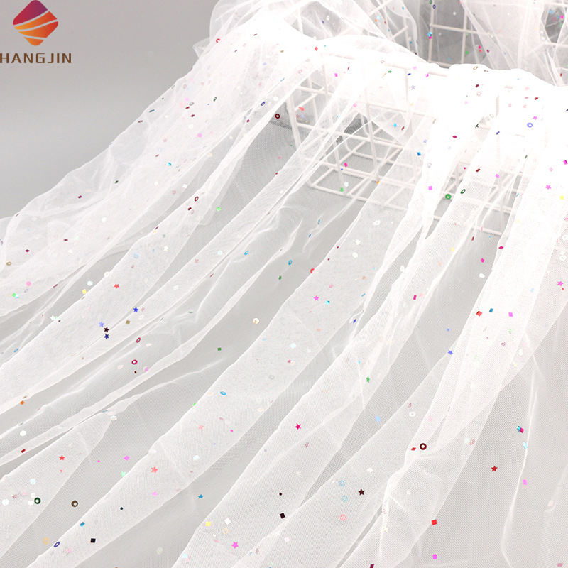 Nom du produit:Tissu de dentelle de Tulle de maille d'impression de scintillement