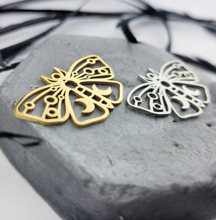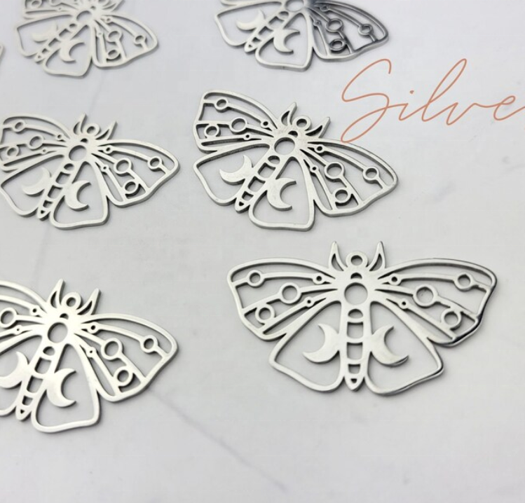 Mode en acier inoxydable creux insecte papillon lune pendentif collier