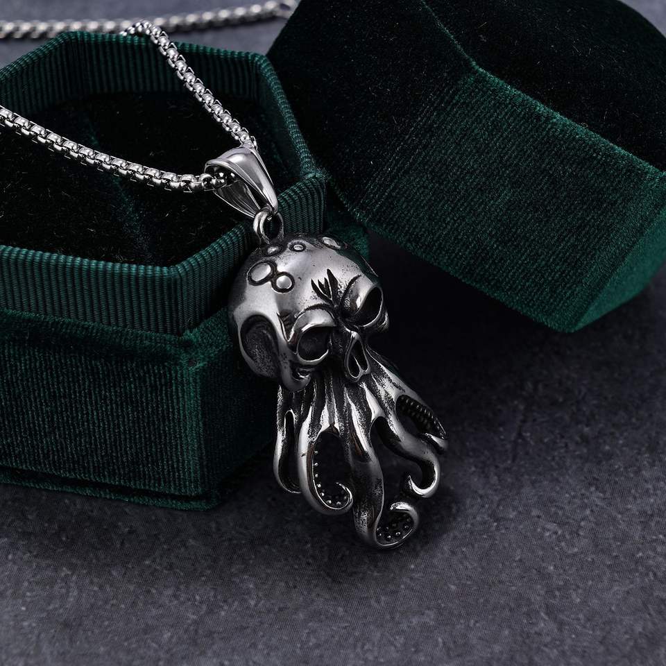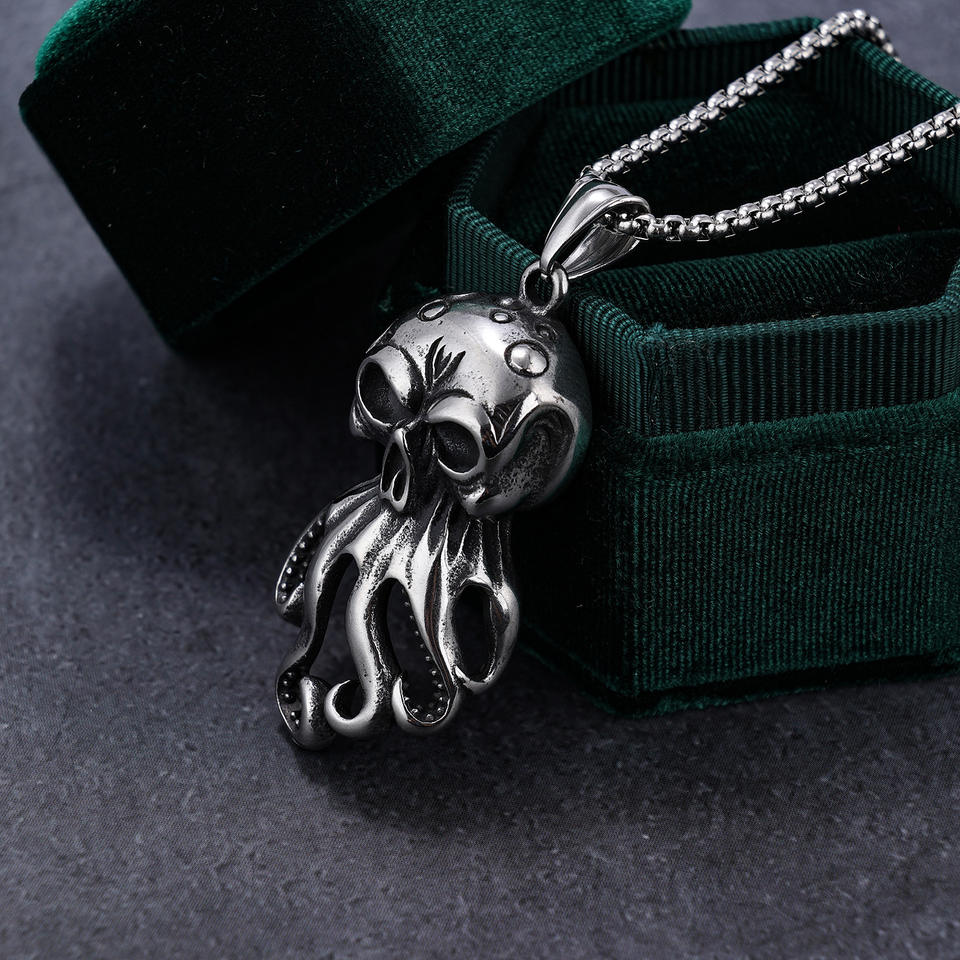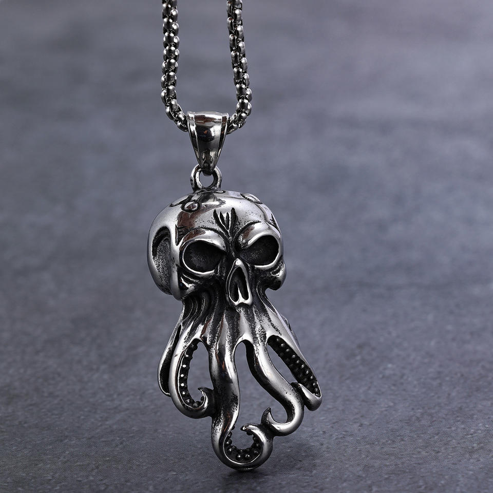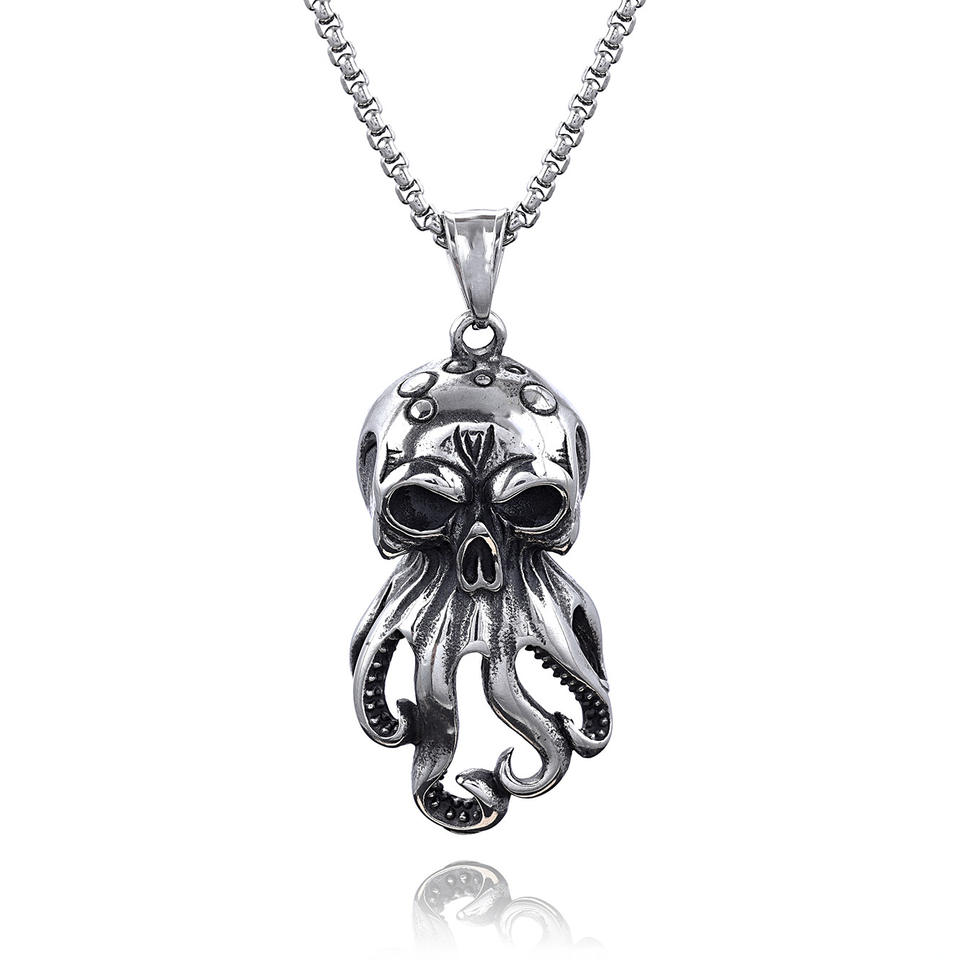 Fashion Stainless Steel Punk Jewelry Water Proof Marine Animal Sea Monster Octopus Skull Hip-hop Singer Pendant Necklace
