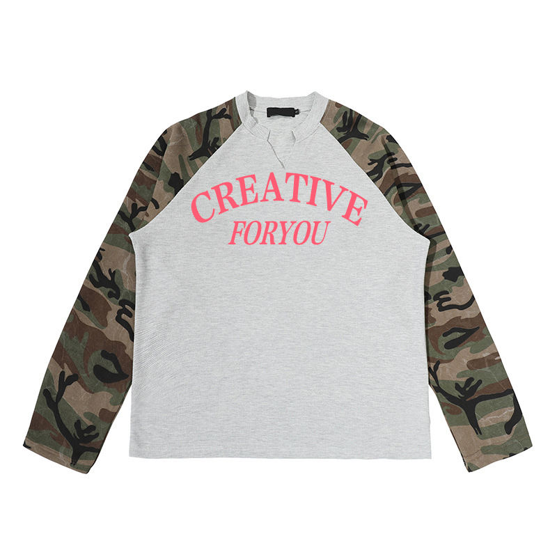 T-shirt à manches longues en tissu gaufré de style streetwear tendance, t-shirt camouflage