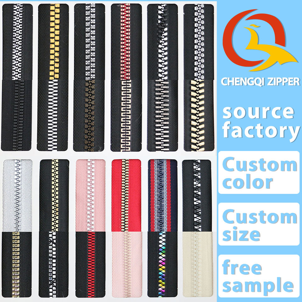 Style de mode personnalisé décoratif 5 #8 # doré fermeture éclair dents la grande muraille forme dents en plastique résine fermeture éclair pour vêtements