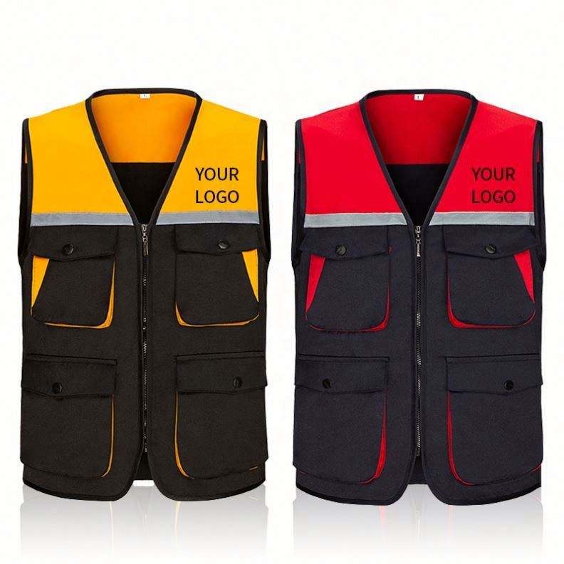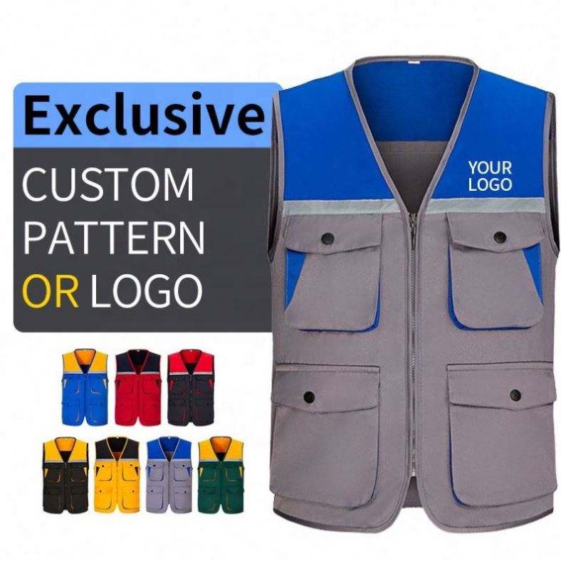 Gilet en velours extensible réfléchissant multi-poches style mode avec logo personnalisé sans manches pour homme, idéal pour la photographie, la pêche et l'escalade