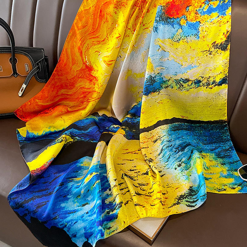 Nom du produit:Écharpe carrée à col imprimé en imitation de soie