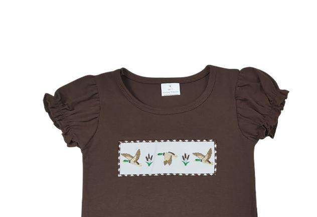 Mode conseils broderie chasse canard colvert marron filles ensemble Sport porter tenue du jour bébé filles vêtements Boutique en gros