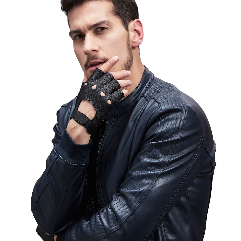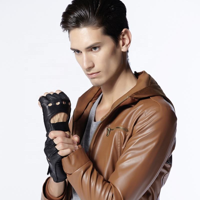 Mode non doublé noir hommes moto cyclisme demi-doigt sans doigts en cuir de daim gants de conduite