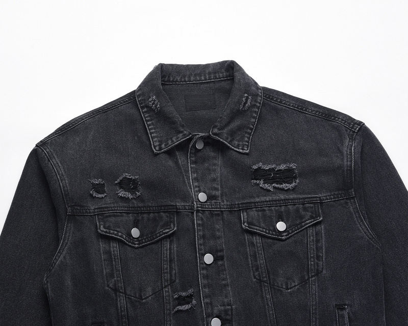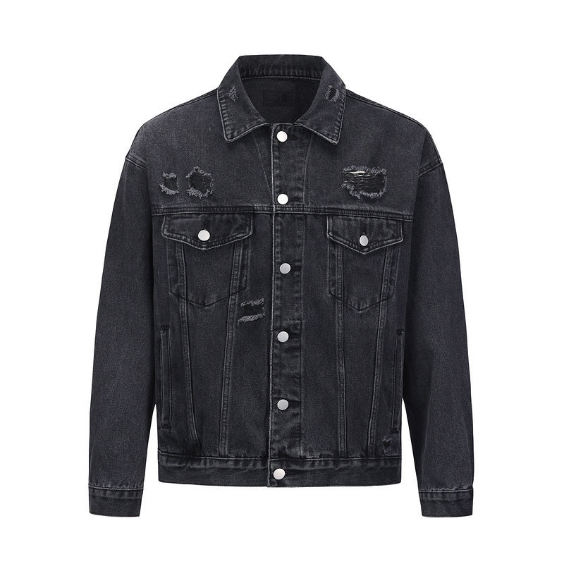 Mode lavé en détresse détruire déchiré Vintage Denim tissus veste en jean personnalisé hommes vestes pour hommes