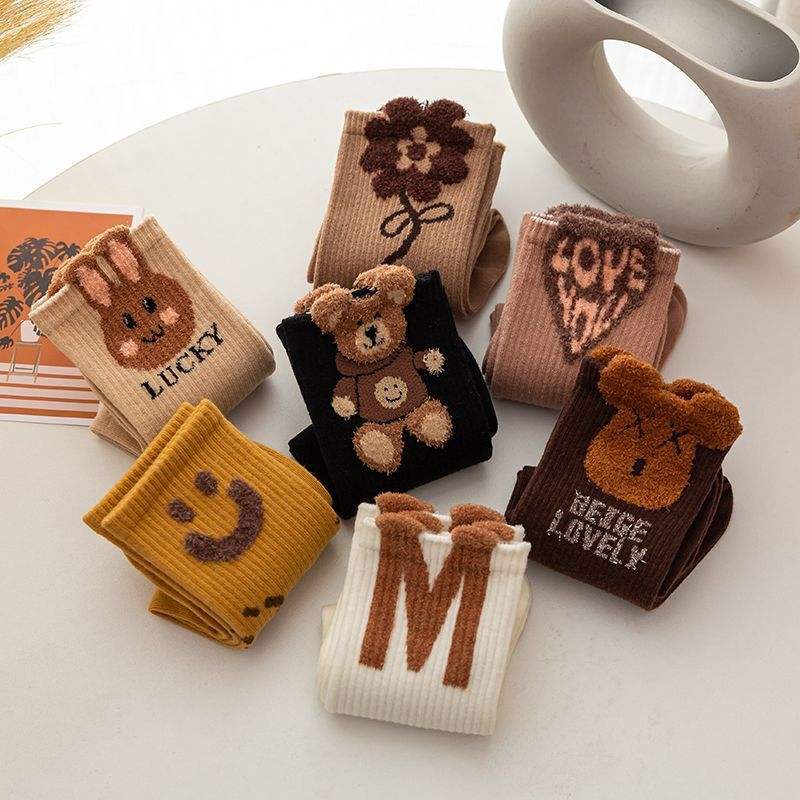 Mode hiver fantaisie chaussettes mignon broderie ours femmes confortable coton drôle dessin animé chaussettes