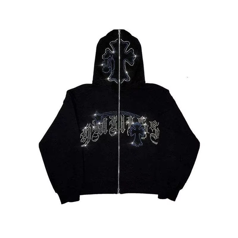 Sweat à capuche pour homme en tissu polaire avec strass, tendance hiver, respirant, confortable, manches longues, sweat à capuche pour homme avec strass